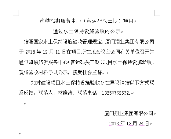 海峡旅游服务中心(客运码头三期)项目通过水土保持设施验收的公示